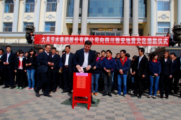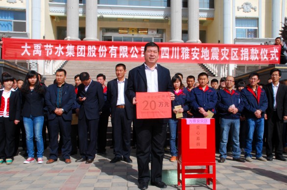 大禹節(jié)水集團向四川雅安地震災區(qū)“送溫暖、獻愛心”捐款活動現(xiàn)場