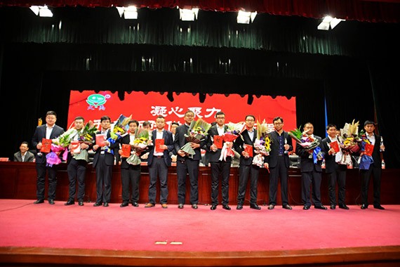 大禹節(jié)水集團(tuán)公司黨委書(shū)記王沖宣讀了《關(guān)于對(duì)2017年各部門、 各子(分)公司經(jīng)濟(jì)承包合同及目標(biāo)責(zé)任書(shū)年終兌現(xiàn)獎(jiǎng)勵(lì)的決定》,總裁謝永生、常務(wù)副總裁段山虎分別宣讀了《關(guān)于表彰獎(jiǎng)勵(lì)2017年度先進(jìn)集體、先進(jìn)個(gè)人的決定》、《2017年年終考核首末位獎(jiǎng)懲結(jié)果》,并向圓滿完成2017年度經(jīng)營(yíng)任務(wù)的各單位和榮獲2017年度先進(jìn)集體、先進(jìn)個(gè)人代表頒獎(jiǎng)。