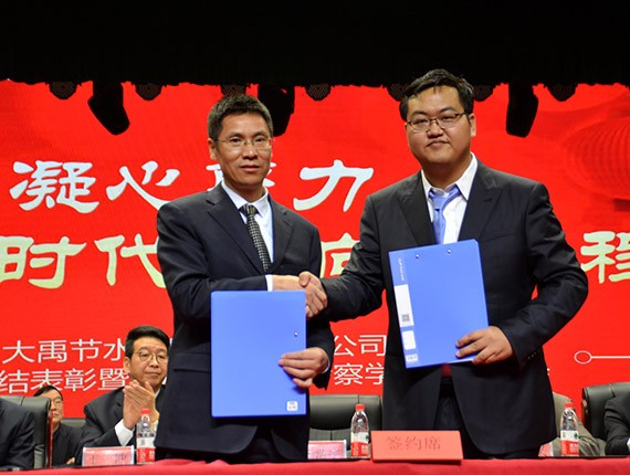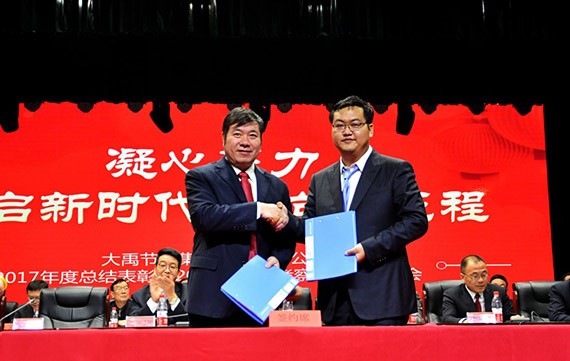集團(tuán)公司董事長(zhǎng)王浩宇與大禹研究院院長(zhǎng)高占義簽訂2018年經(jīng)營(yíng)承包合同