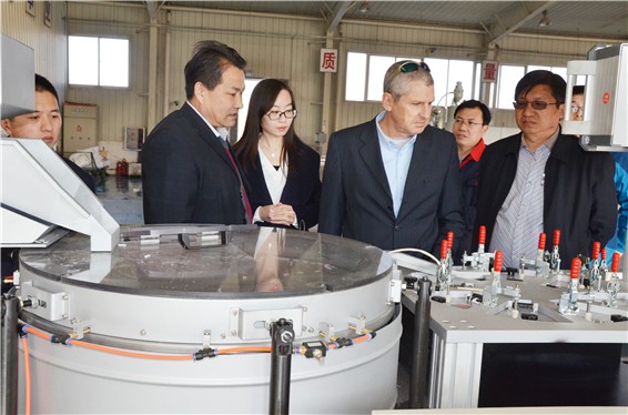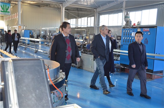 以色列美滋公司亞洲區(qū)市場經(jīng)理Tzur Harel先生在公司領(lǐng)導(dǎo)陪同下參觀考察滴灌(管)帶生產(chǎn)車間