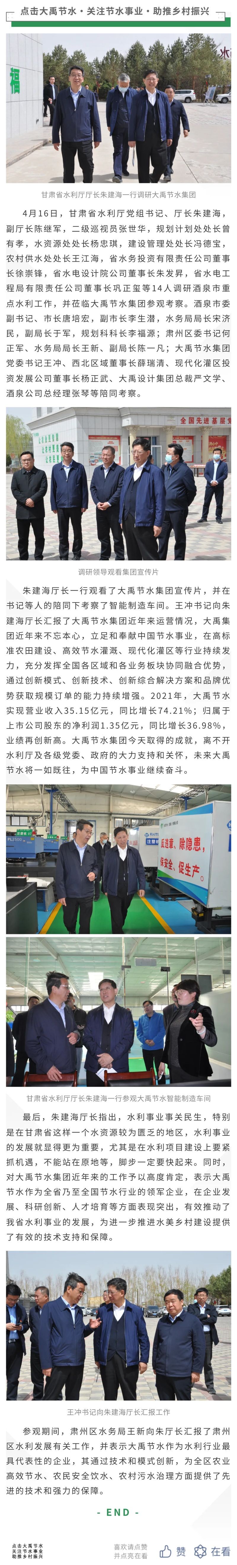 大禹動態(tài)| 甘肅省水利廳廳長朱建海帶隊考察省重點水利工程蒞臨大禹節(jié)水參觀調(diào)研