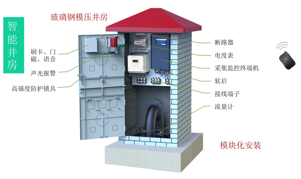機(jī)井(地下水)取水計(jì)量監(jiān)控設(shè)施,集刷卡取水、自動(dòng)用水用電計(jì)量、水泵控制、遠(yuǎn)程監(jiān)測(cè)等功能于一體,實(shí)現(xiàn)地下水取水自動(dòng)計(jì)量、IC卡控制、遠(yuǎn)程傳輸?shù)囊惑w化和一卡式操作、一柜式安裝。