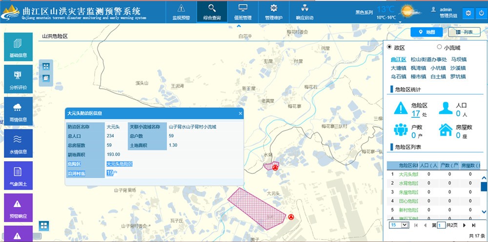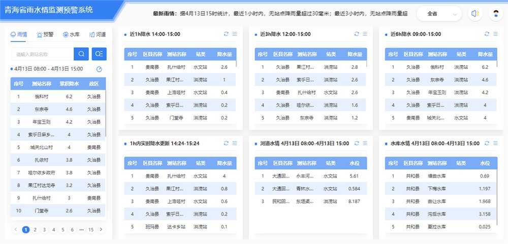 基于水利一張圖,疊加全省雨情、水情、預(yù)警(提醒)、災(zāi)情信息,實現(xiàn)山洪災(zāi)害防御要素的實時監(jiān)控和展示,全面支撐水旱災(zāi)害防御智能應(yīng)用業(yè)務(wù)。
