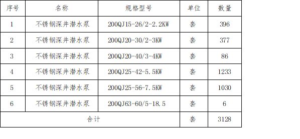 3、招標(biāo)內(nèi)容:不銹鋼深井潛水泵